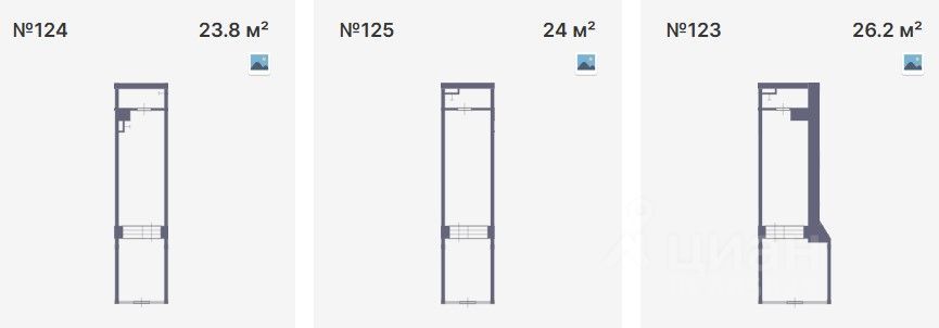 Площадь лотов — 26.2 - 23,8 - 24 м2.