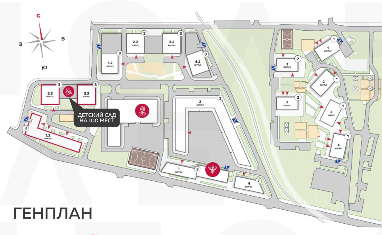 Высокая плотность населения района гарантирует стабильный спрос на образовательные услуги - рядом расположено множество крупных современных ЖК. Наличие собственной школы на 800 мест внутри жилого комплекса создает дополнительные возможности для развития дошкольного учреждения, обеспечивая непрерывность образовательного процесса и привлекая родителей, заинтересованных в комплексном подходе к образованию детей.