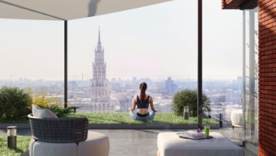— Небесная гостиная — клубное пространство для жителей со спортивной зоной, кинотеатром, коворкингом и местами для отдыха.