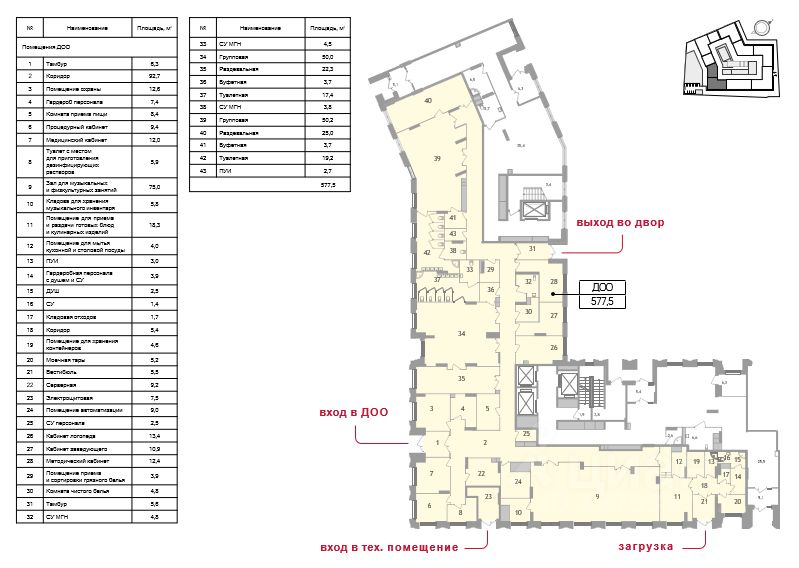 Продажа помещения от застройщика для организации ДОО площадью 577,5 кв. м на 50 мест.