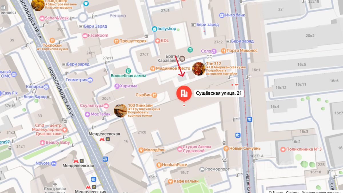 Ближайшие станции метро: Новослободская, Менделеевская