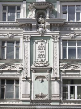 В основе здания лежит усадебный дом построики 1793 года, бывшии "Доходныи дом купца И. М. Коровина". Творение зодчего Кондратенко. Фасад украшен пышным декором, три купольные надстройки над слуховыми окнами украшают и подчеркивают симметричный силуэт строения, причудливые эркеры образуют входные группы. В этом доме жил и работал над своим произведением Вишневыи сад А.П. Чехов.