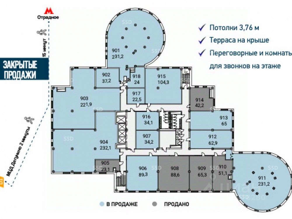 Продажа помещения свободного назначения в новом МФК "Гало". Адрес: Алтуфьевское шоссе, 35к1.