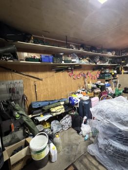 отделанный, утеплений гараж на 1 машину, яма для ремонта авто, раздвижная крышка на роликах, полки по периметру, кухонная зона, туалет био с отдельным входом, лестница на второй этаж удобная.