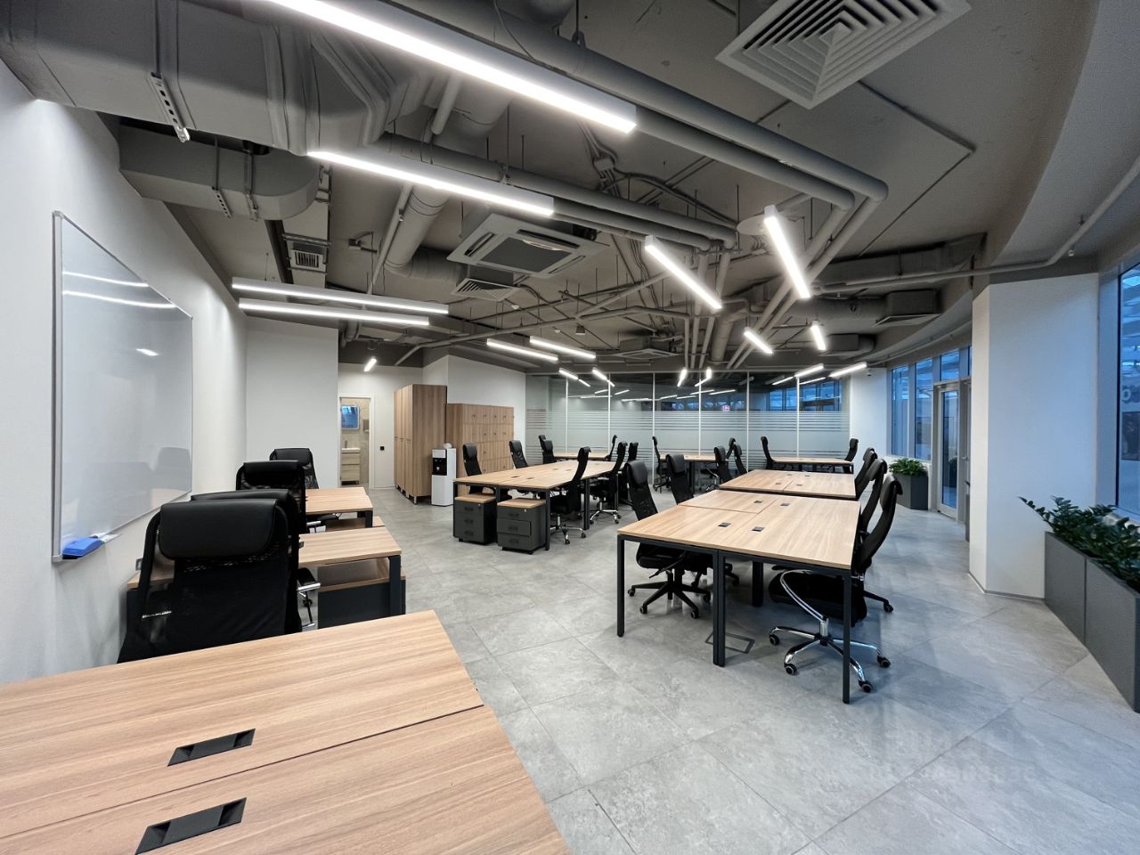 Помещение позволяет комфортно разместить 150+ рабочих мест с сохранением приватности и удобной логистики.