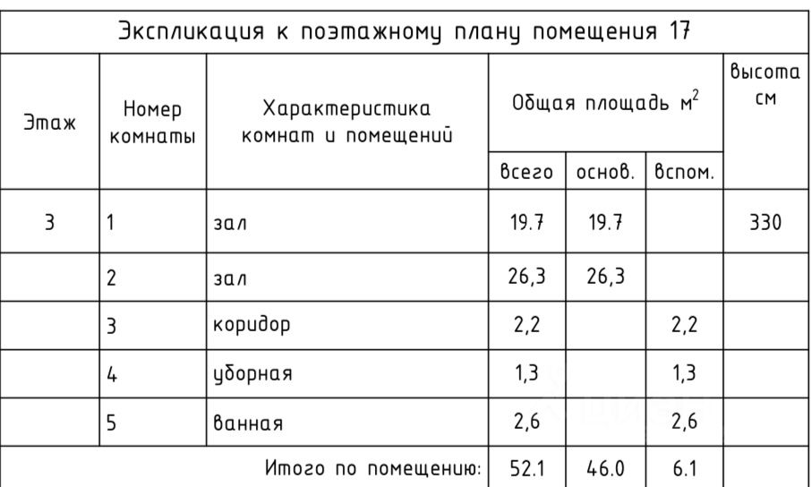 Общая площадь: 52,1 кв.м.