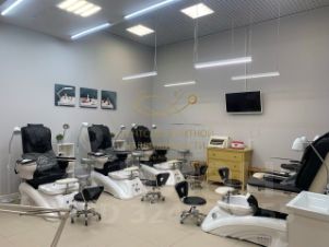 -Большая площадь: 100 кв.м. пространства с 5 местами для педикюра и 6 для маникюра и место для бровиста.