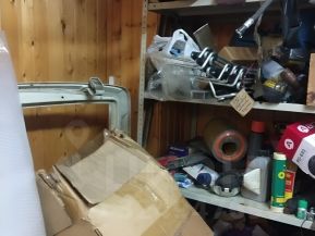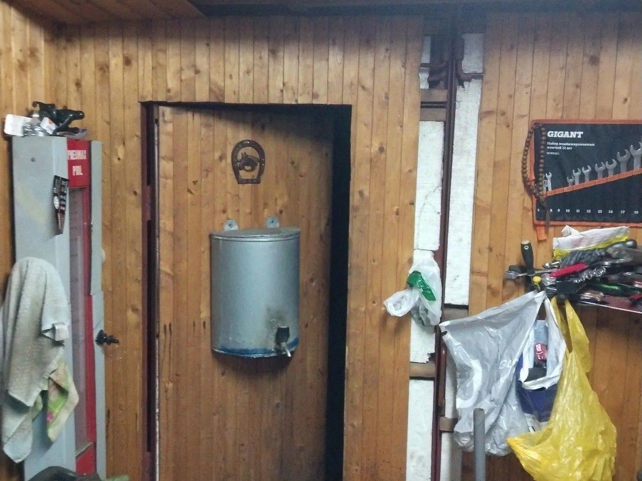 Шире обычных , обшит вагонкой , внизу подвал , стоит откачной насос для грунтовых вод .