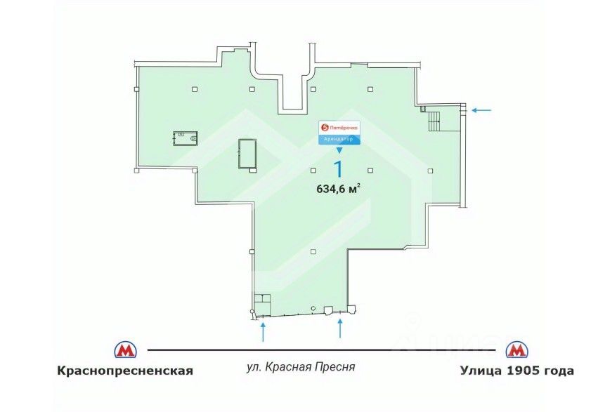 1095328 . Предлагаем к приобретению торговое помещение формата Street Retail с якорным арендатором - сеть супермаркетов "Пятерочка", площадью 634,6 кв. м., расположенное на первом этаже жилого дома. Без комиссии для покупателя.