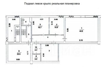 Подвал, общей площадью 290 кв.м. разделен на две части и имеет 2 входа с первого этажа ( по разные стороны помещения) - можно оборудовать под любой вид деятельности с удобным делением. В подвале 3 мокрые точки, 2 системы кондиционирования . Гидравлический погрузочный подъемник ( обслужен и в рабочем надлежащем виде) . Один эвакуационный выход.
