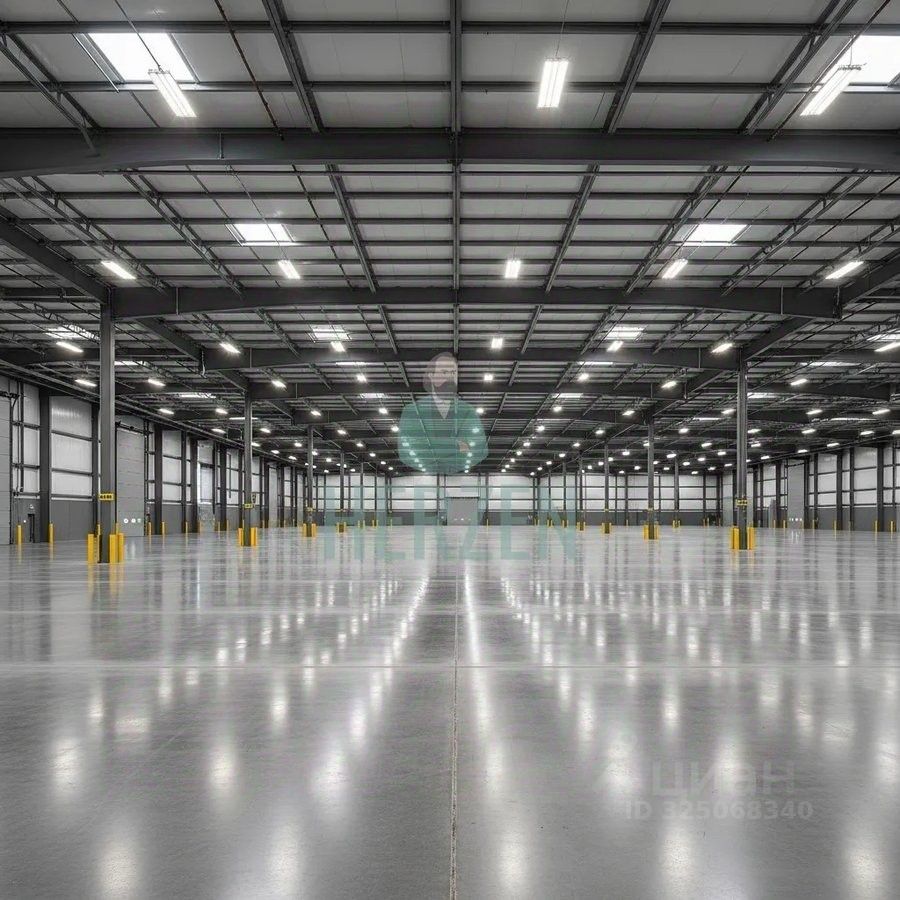 Ровный бетонный пол с антипылевым покрытием. Допустимая нагрузка на пол 5 т/м2
