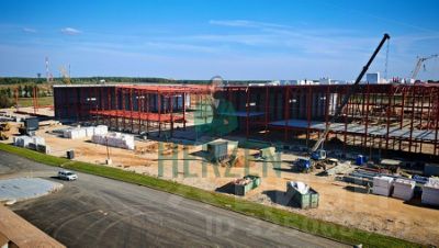 Покрытие кровли состоит из многослойного "пирога" толщиной 150мм и 120мм с поливинилхлоридной мембраной, утеплителем и слоем пароизоляции.