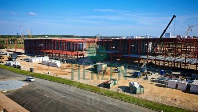 Стальной профилированный настил по двускатным металлическим фермам с уклоном 3%, с внутренним водостоком со сроком службы более 20 лет.