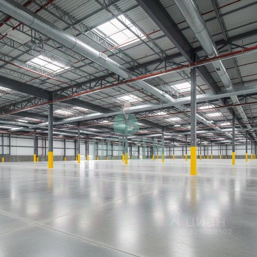 Ровный бетонный пол с антипылевым покрытием. Допустимая нагрузка на пол 6 т/м2.