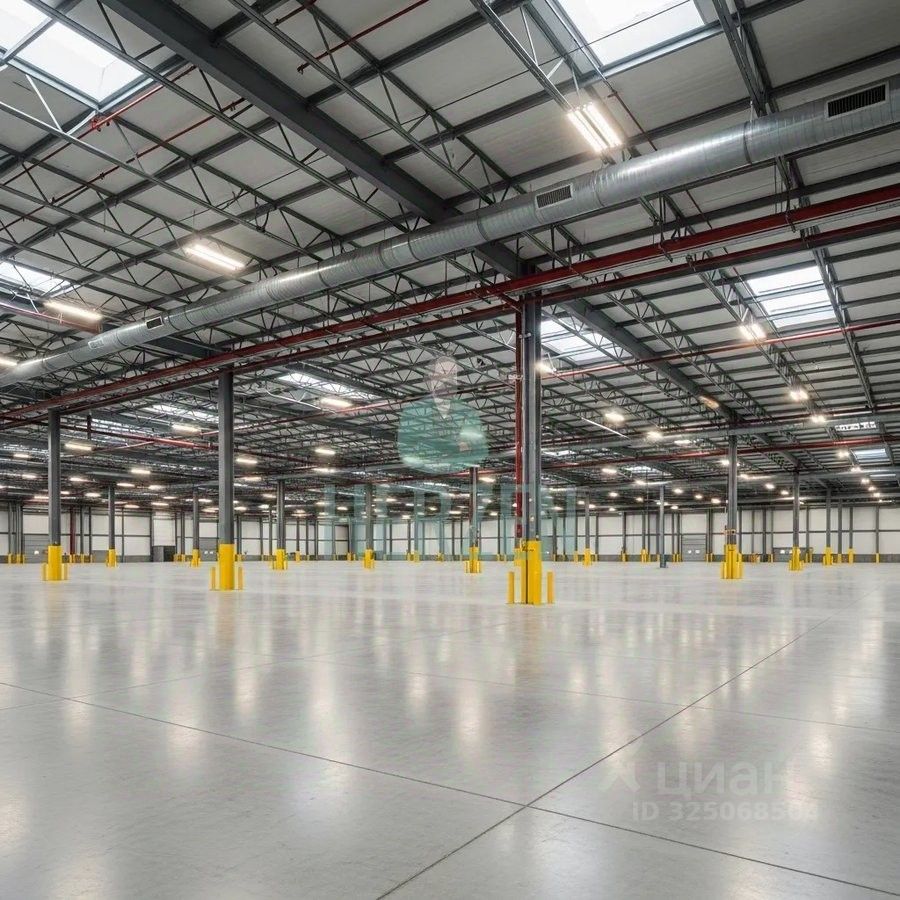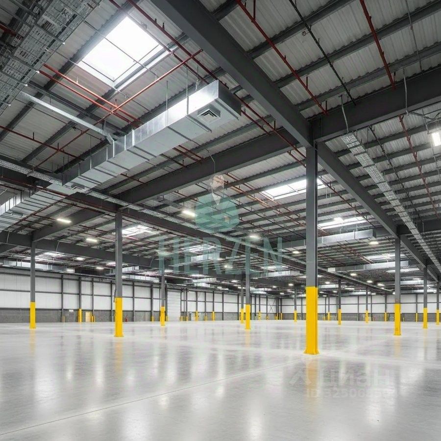 Ровный бетонный пол с антипылевым покрытием. Допустимая нагрузка на пол 6 т/м2.