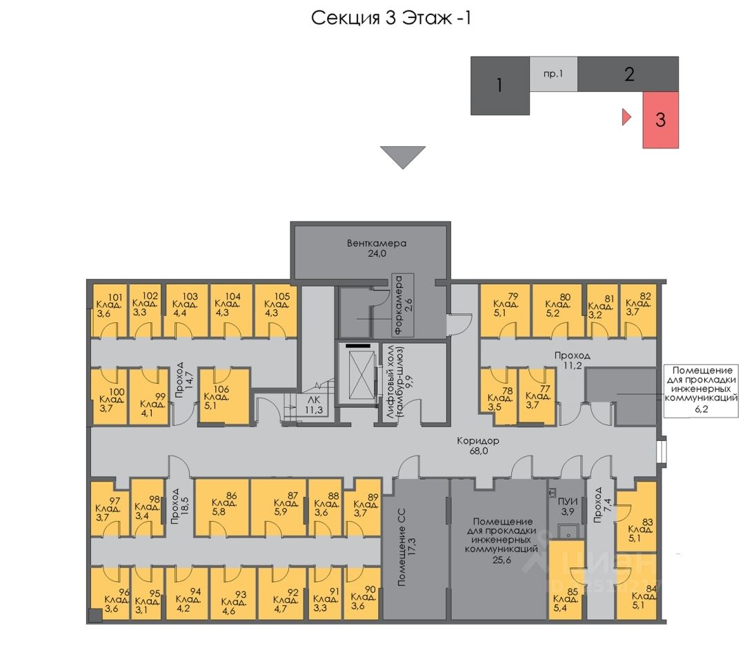 Продаётся кладовка 3,5 кв.м. в 3-й секции корпуса 6.1. ЖК Волжский парк (адрес: Москва, 1-й Грайвороновский проезд, 7Ак3)