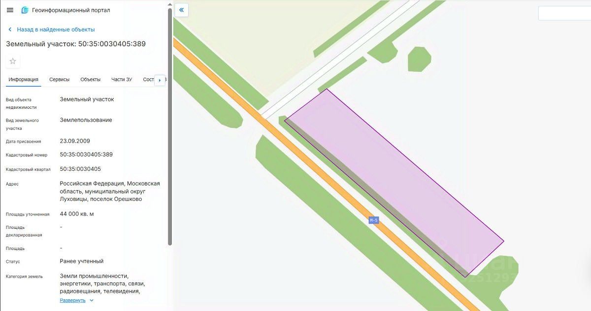 Лот: 418944. БЕЗ КОМИССИИ! Земельный участок 4,4 Га (44000 кв.м) на первой линии оживленного Новорязанского шоссе (трасса М-5 Урал).