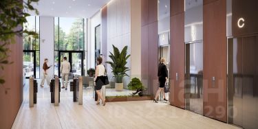 - На первых этажах офисных зданий просторные лобби с комфортной зоной ожидания, супермаркет, торговые помещения, отделения банков и сервисных служб, фитнес-студия