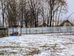 — Участок огорожен забором, есть бытовки, ангары под материалы, а также дом под снос (можно использовать временно или убрать под новое строительство).