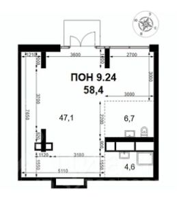 Площадь58 м²