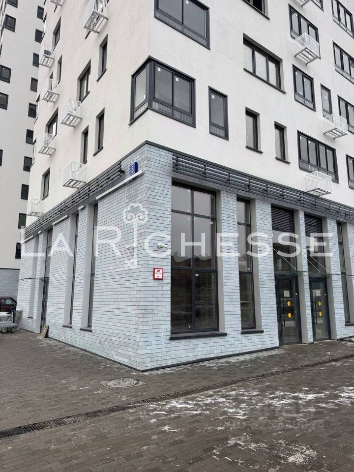Помещение на углу здания с панорамными окнами, которые выходят на улицу и на двор.