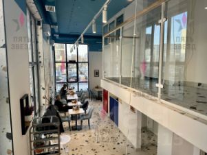 Помещение светлое и яркое благодаря витражным стеклам. Угловое помещение. Установлены сплит-системы, охранная сигнализация и высококачественная вытяжка.