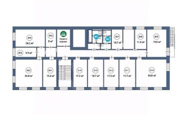 Площадь распределена между 13 изолированными кабинетами и переговорной. Помещения светлые, просторные, во всех — окна.