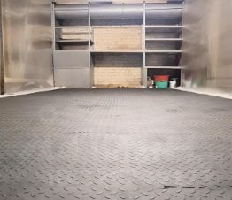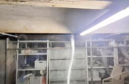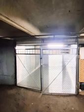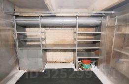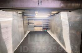 — Площадь: 18 кв.м (размеры: длина — 6,35 м (до стеллажа 5,65 м, глубина стеллажа 0,7 м), ширина — 2,65 м у ворот; 3,10 м у стеллажа; высота — 1,93 м до балки, 1,95 м до пожарной трубы; есть запас под полки под потолком).