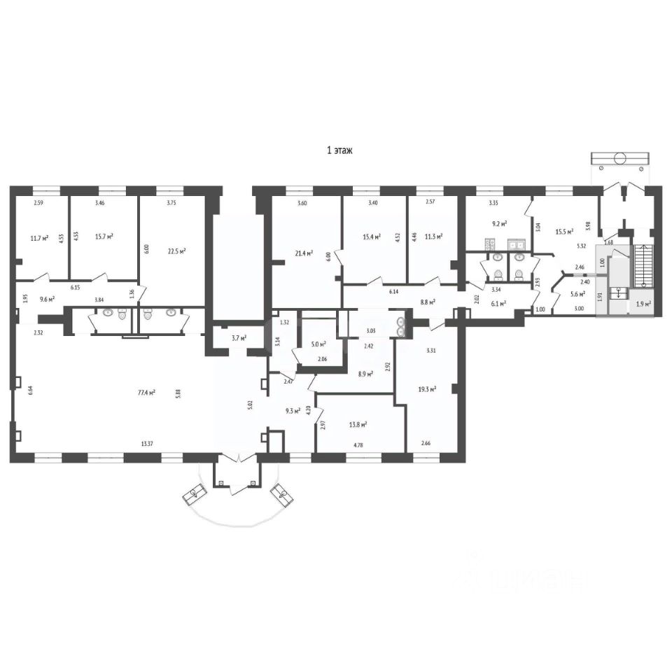 Отдельное подвальное помещение кабинетного типа площадью 351,8 м² с 11 изолированными комнатами, санузлом и душевой обладает значительным потенциалом для сдачи в аренду под офисы или коммерческие проекты.