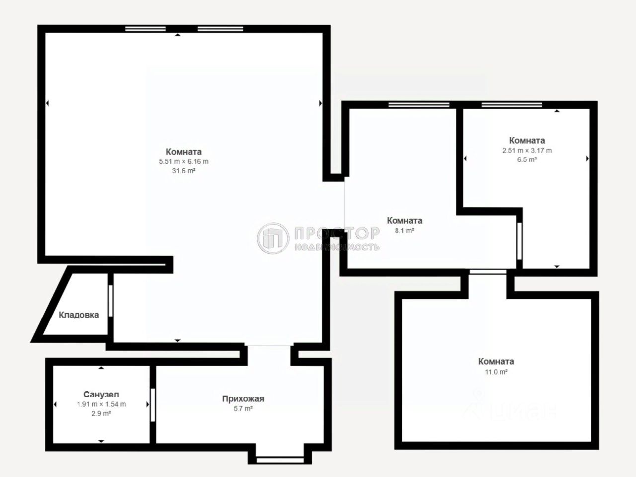 Продуманная планировка:3 изолированные комнаты и отдельный санузел. Помещение на цокольном этаже с 4 окнами и высокими потолками создает светлую и просторную атмосферу.