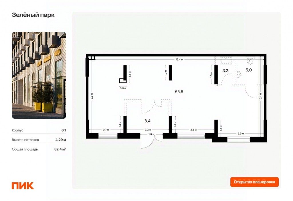 - Открытая планировка, возможно объединить несколько помещений