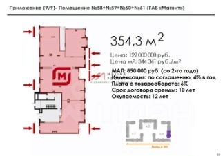 Арендатор : супермаркет "Магнит" . Месячная арендная плата 850 000 руб. Индексация: по соглашению, 4% в год .Срок договора аренды: до 3035 года. Окупаемость: 12 лет