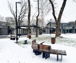 Отделка фасадов выполнена панелями с имитацией клинкерного кирпича. Дополнительно на территории организованы зоны отдыха, также дополнительно имеется возможность для организации летних веранд и кафе.