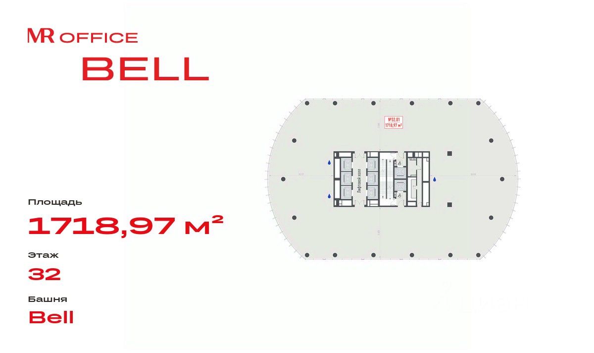 Продается офисное помещение 1718.97 м² на 32 этаже в новом небоскребе класса Prime — БЦ BELL на Белорусской от бренда MR Office.