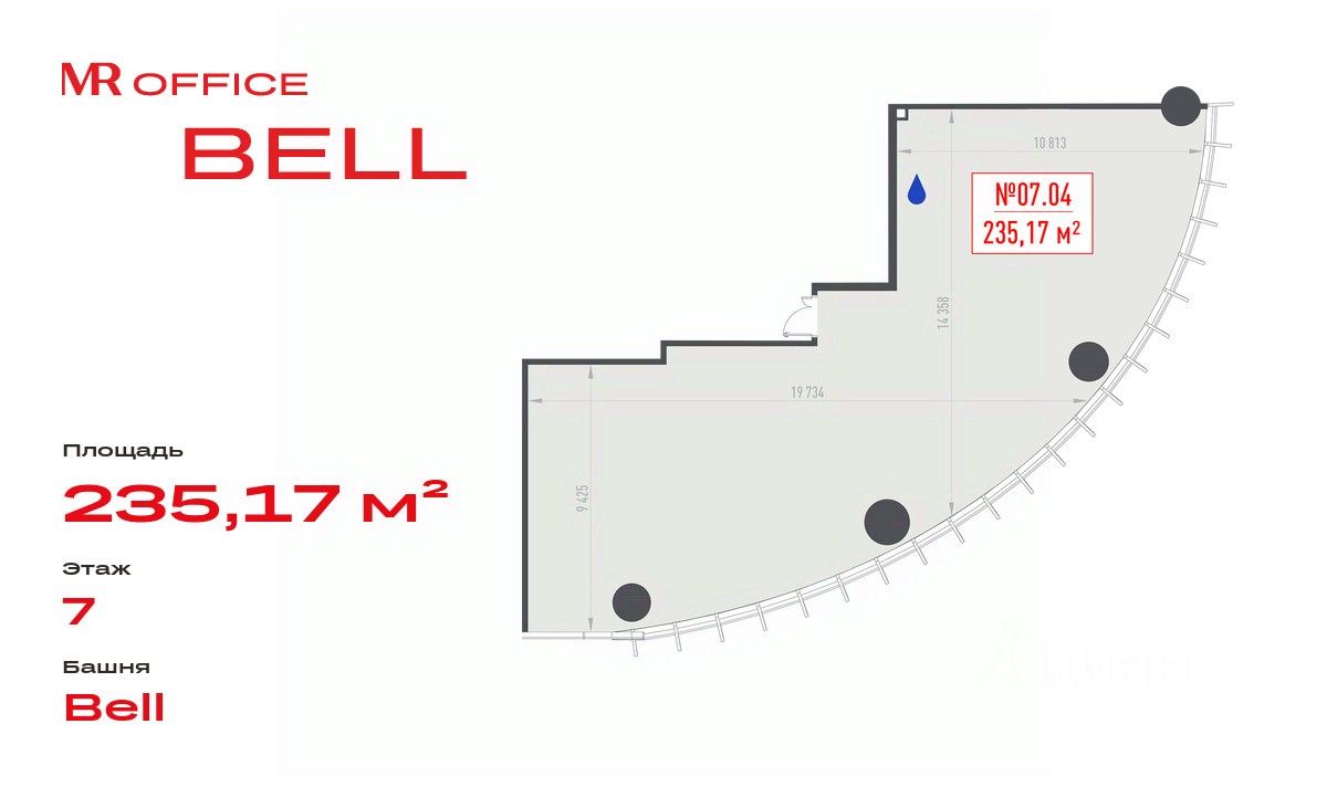Продается офисное помещение 235.17 м² на 7 этаже в новом небоскребе класса Prime — БЦ BELL на Белорусской от бренда MR Office.