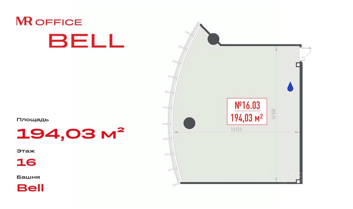 Продается офисное помещение 194.03 м² на 16 этаже в новом небоскребе класса Prime — БЦ BELL на Белорусской от бренда MR Office.