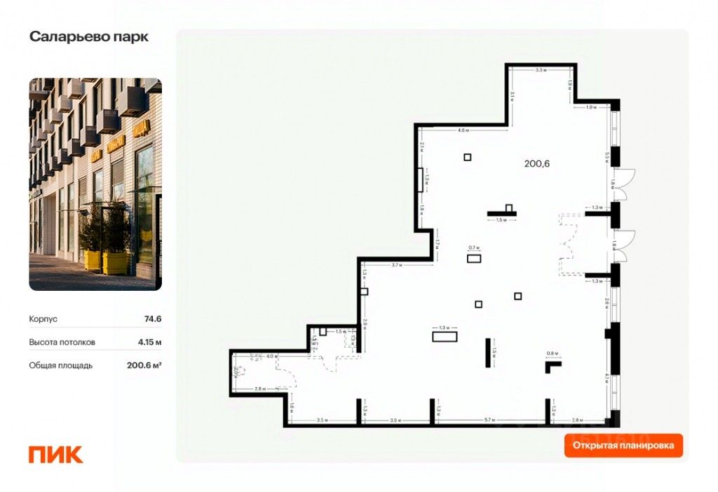 Выгода 5% на строящееся помещение по промокоду COMM5 до 28 февраля. Продаётся нежилое помещение свободного назначения в новом жилом районе Саларьево парк от ПИК. Открытая планировка, витринное остекление, удобный вход на уровне земли. Помещение номер 24. Продажа напрямую от застройщика.