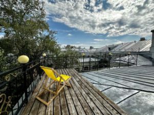 площадь не включена). санузел. Свежий ремонт после выезда. Высокие потолки, качественный свежий ремонт. под офис, студии. каворкинг. йога итд отель. Основные характеристики: Открытая терраса - 50,5 кв.м. (не входит в общую площадь) . Идеально подходит для творческого пространства, учебного центра или представительского офиса. Расположение в престижном районе и удобная транспортная доступность делают помещение особенно привлекательным.