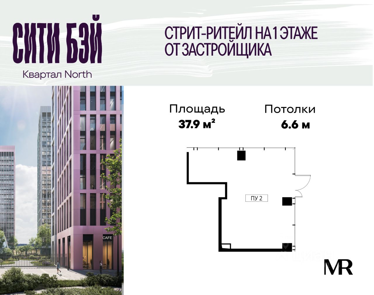 Продаётся коммерческое помещение свободного назначения с отдельным входом на 1 этаже жилого комплекса Сити Бэй от застройщика. Площадь помещения 37,9 м².