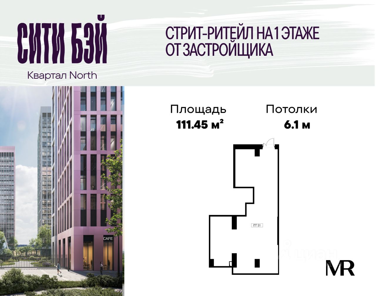 Продаётся коммерческое помещение свободного назначения с отдельным входом на 1 этаже жилого комплекса Сити Бэй от застройщика. Площадь помещения 111,45 м².