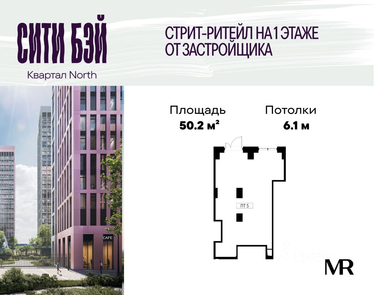 Продаётся коммерческое помещение свободного назначения с отдельным входом на 1 этаже жилого комплекса Сити Бэй от застройщика. Площадь помещения 50,2 м².