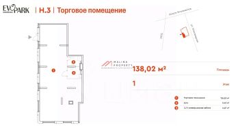 Помещение 138,02 м2, располагается на 1 этаже, открытая планировка, отдельный вход с фасада, высота потолка 4 м, витринные окна по фасаду. Электрическая мощность 0,2 Вт на м2. Парковка перед фасадом. Место для размещения рекламы.