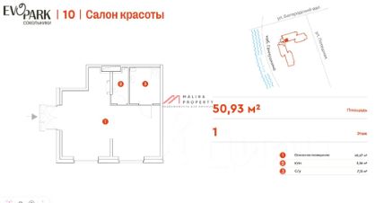 Помещение 50,93 м2, располагается на 1 этаже , открытая планировка, отдельный вход, высота потолка 4 м, витринные окна по фасаду. Электрическая мощность 0,2 Вт на м2.