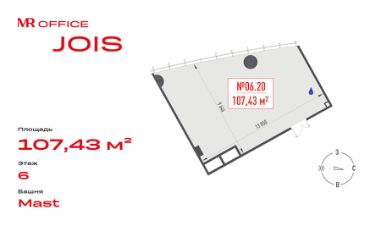 Предлагается офисное помещение 107.43 м² на 6 этаже БЦ Jois.