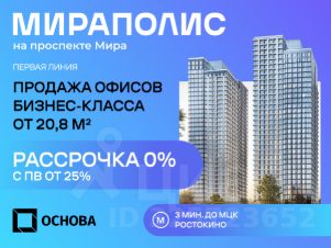 Продаются офисные и коммерческие помещения различных площадей — от 20 до 81 м² в МФК бизнес-класса "Мираполис", на первой линии проспекта Мира. Продажа от Застройщика. Ввод в эксплуатацию — IV квартал 2026 г.
