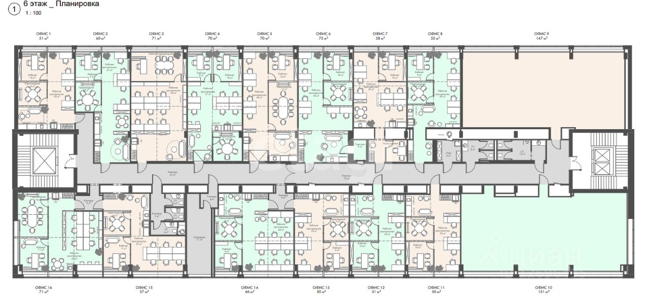 В данный момент планировка соответствует плану, все офисы имеют свой кадастровый номер и пока есть возможность выбрать любую площадь.