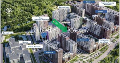 Хорошо просматривается от пешеходного перехода к лесопарку и внутренних дорог внутри квартала; рядом будет форматный супермаркет; пешеходный трафик от остановки и метро в сторону существующих заселенных домов существенно увеличится после сдачи комплекса на 4000 квартир.