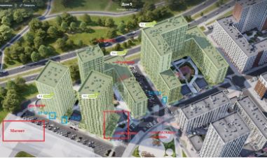 Помещение располагается в центре жилого массива, у центральной площади, рядом с супермаркетом, рядом остановка общественного транспорта. Интенсивный автомобильный и пешеходный трафик вдоль помещения. Окружение: Супермаркет и другие, центральная площадь.
