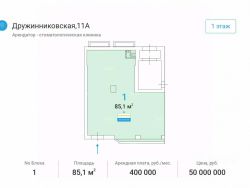 1-ый этаж 5-ти этажного жилого дома. Общая площадь 86 кв.м. Отдельных входа с улицы. Выделенная мощность электроэнергии по запросу. Высота потолков 3 м. Больше витринные окна. Наличие места на фасаде для рекламной выставки. Все центральные коммуникации. Санузел.