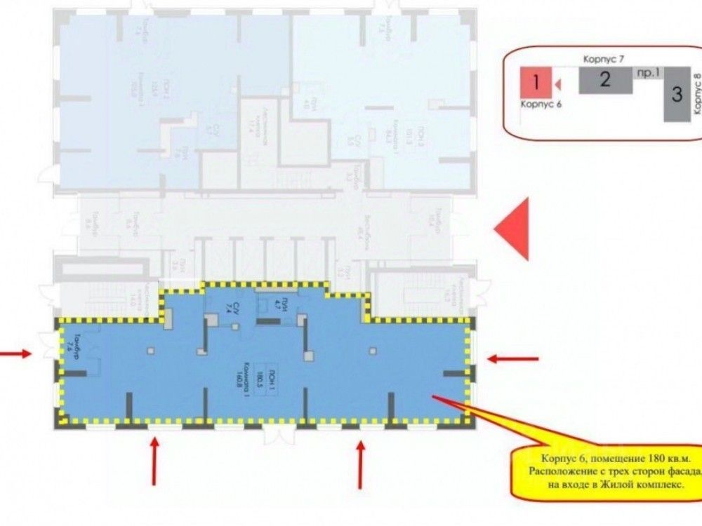 . 1 линия дома, 1 этаж, большой рекламный потенциал, проходное место.
